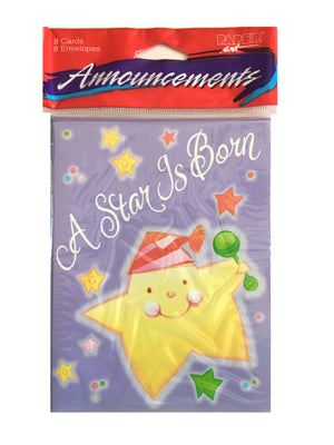 A Star Is Born Baby Birth Announcement Cards 8 CT - Purple with Yellow Star Twinkle Twinkle