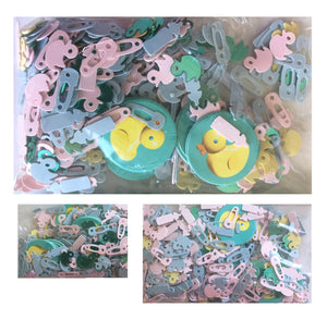 Baby Shower Party Confetti Rubber Ducky Baby Bottles & Pins Pink and Blue