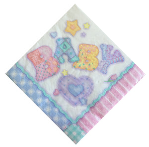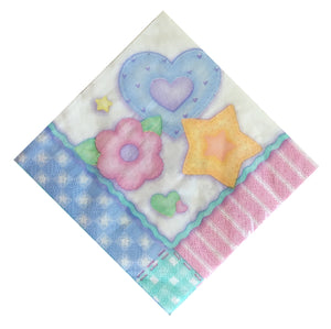 Baby's Quilt Baby Shower Napkins - Hearts Flowers Stars - Dessert or Luncheon Boy/Girl Pink Blue Green