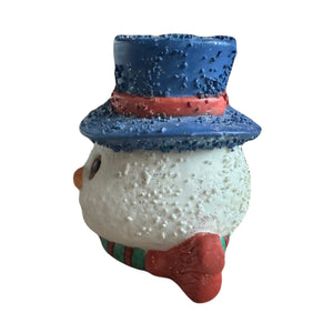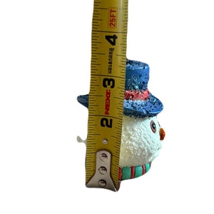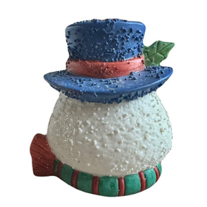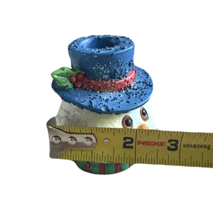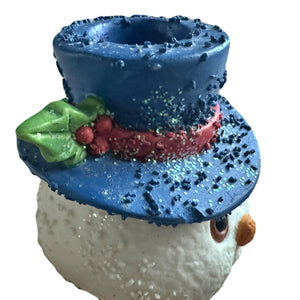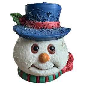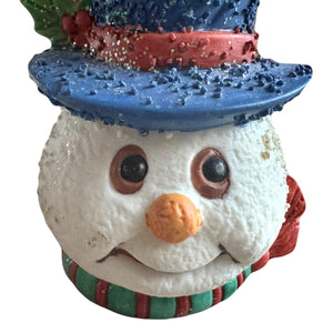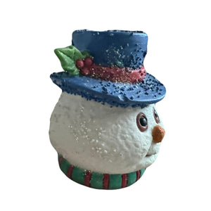Cute Frosty The Snowman Shaped Head Christmas Hat Taper Candle Holder with Scarf & Holly Glitter 3" Vintage Candlestick