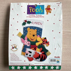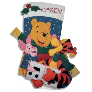 Disney Winnie The Pooh Piglet Tigger Caroling Friends 18" Christmas Felt Stocking Kit with Sequins, Beads, Embroidery Vintage Rare Personalized DIY Craft