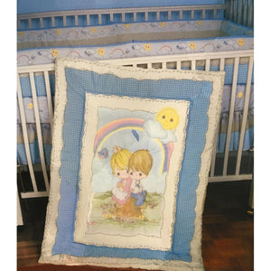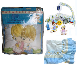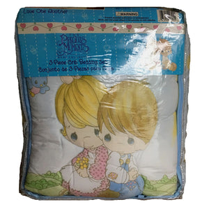 NEW USA Vintage 5 PC Precious Moments LOVE ONE ANOTHER Baby Crib Bedding Set Boy Girl Unisex Nursery Collection with Dust Ruffle & Musical Mobile Rare 2000