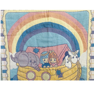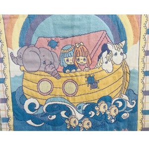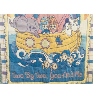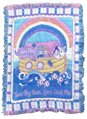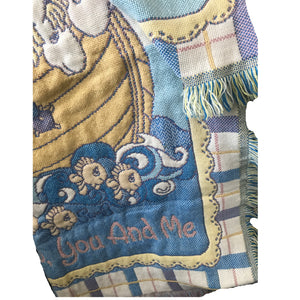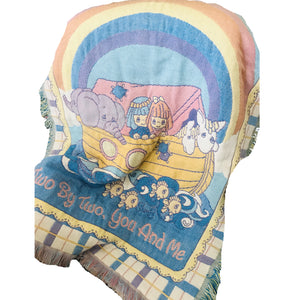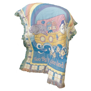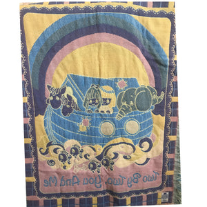 Vintage Precious Moments Noah's Ark Baby Blanket Woven Jacquard Crib Nursery Throw Two By Two 32" X 43" Keepsake Baby Shower Gift 1999