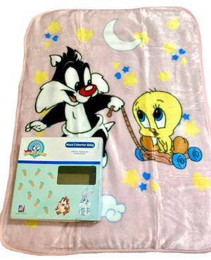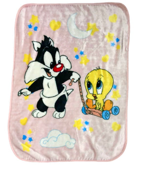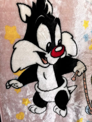RARE Vintage NEW Baby Looney Tunes Pink Sylvester Cat & Tweety Bird Baby Fleece Minky Plush Crib Blanket 30" x 41" Printed Throw 2000 Moon & Stars with Gift Box