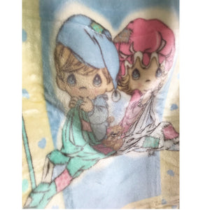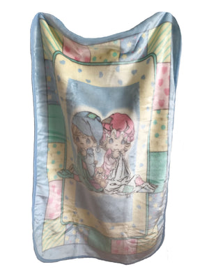 New Vintage 2000 Precious Moments Bedtime Pajamas Girl Boy Baby Blanket Luxury Plush Crib Throw 30" x 45" Sweet Dreams Velour Velvet Thick Minky Y2K