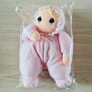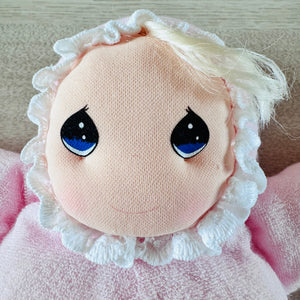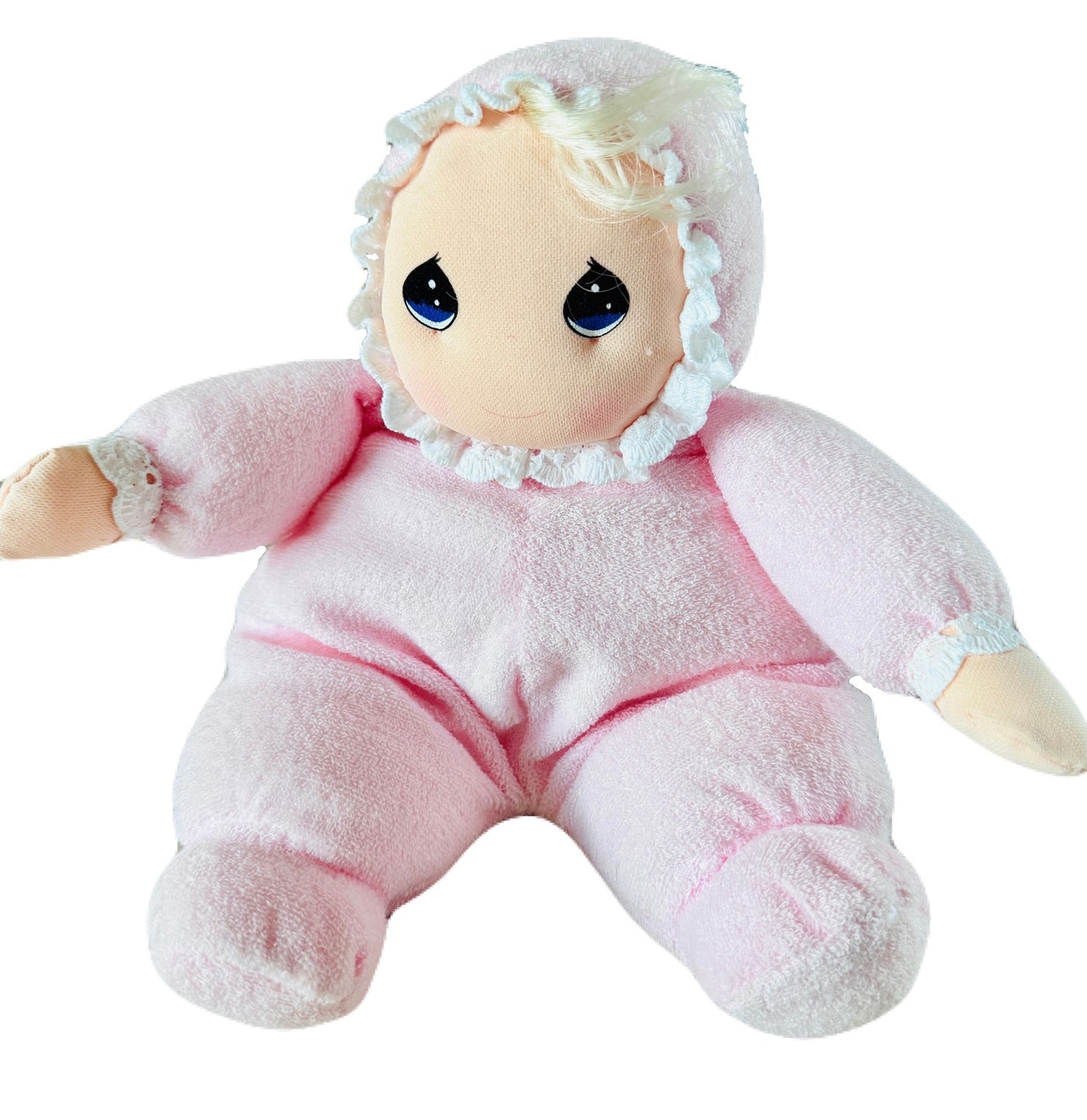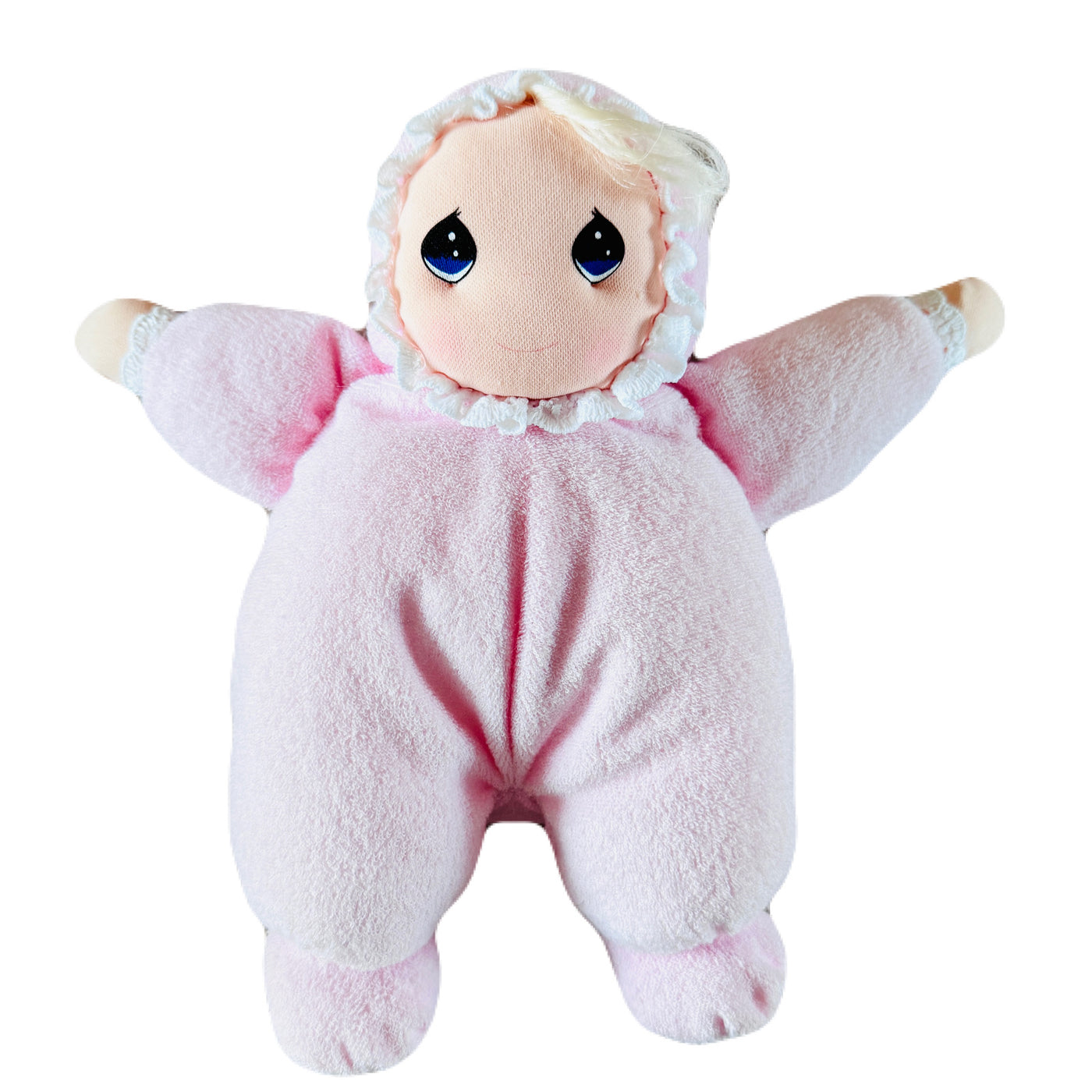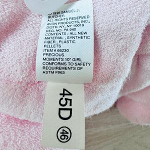 Vintage Precious Moments Terry Cloth Soft Plush Baby Doll 1995 Dakin Avon Lovey Pink Girl Collectible Beanbag Stuffed Toy 10"