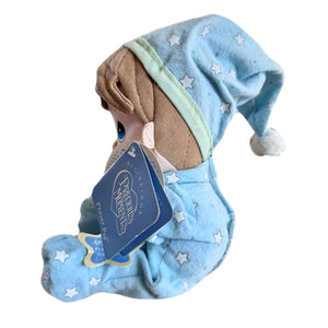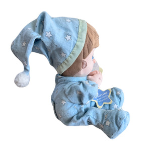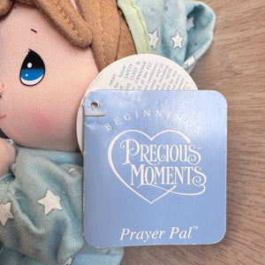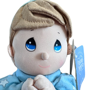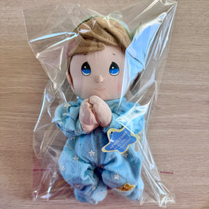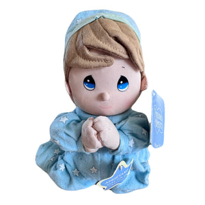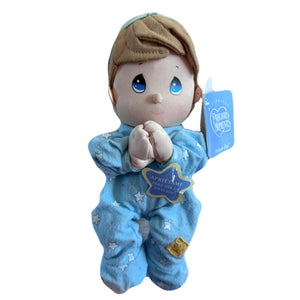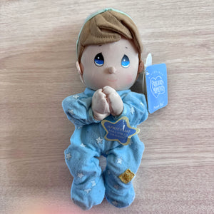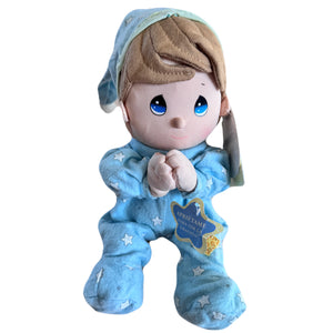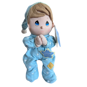 Vintage Talking Precious Moments 9" Baby Boy Plush Soft Rag Doll Says Lord's Bedtime Prayer Pal Praying Toy in Blue Cotton Pajamas Shower Gift