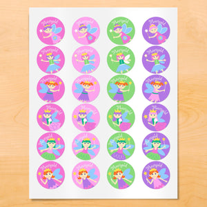 Fairy Princess Pink Personalized Round Waterproof Labels 24 CT