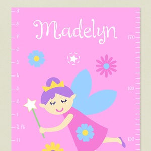 Make every day magical with this adorable personalized growth chart featuring fairies, flowers, and your little one's name! This fun growth chart is ready to hang and will instantly make an exciting change in your child's bed or play room.