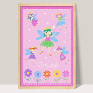 Pink Fairy Princess Personalized Kids Wall Art Print 12" x 18"