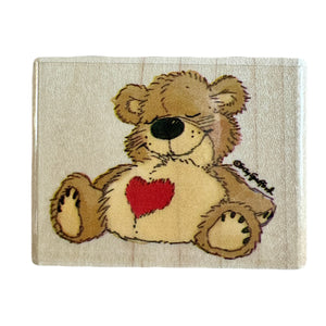 New Vintage Little Suzy's Zoo Sleeping Bear 'Boof Asleep' Wooden Rubber Stamp by Rubber Stampede A2267D