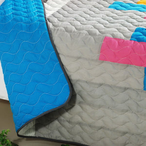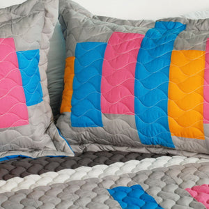 Pink Blue Grey Striped Teen Girl Bedding Full/Queen Quilt Set Modern Geometric Bedspread