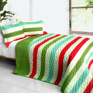 Green Red Turquoise Blue Striped Teen Bedding Full/Queen Quilt Set Modern Bedspread