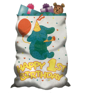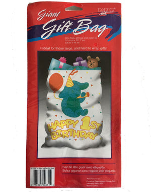 Happy 1st Birthday Party Noah's Ark Bunny Giant Plastic Gift Bag with Tag & Tie 36" x 44"