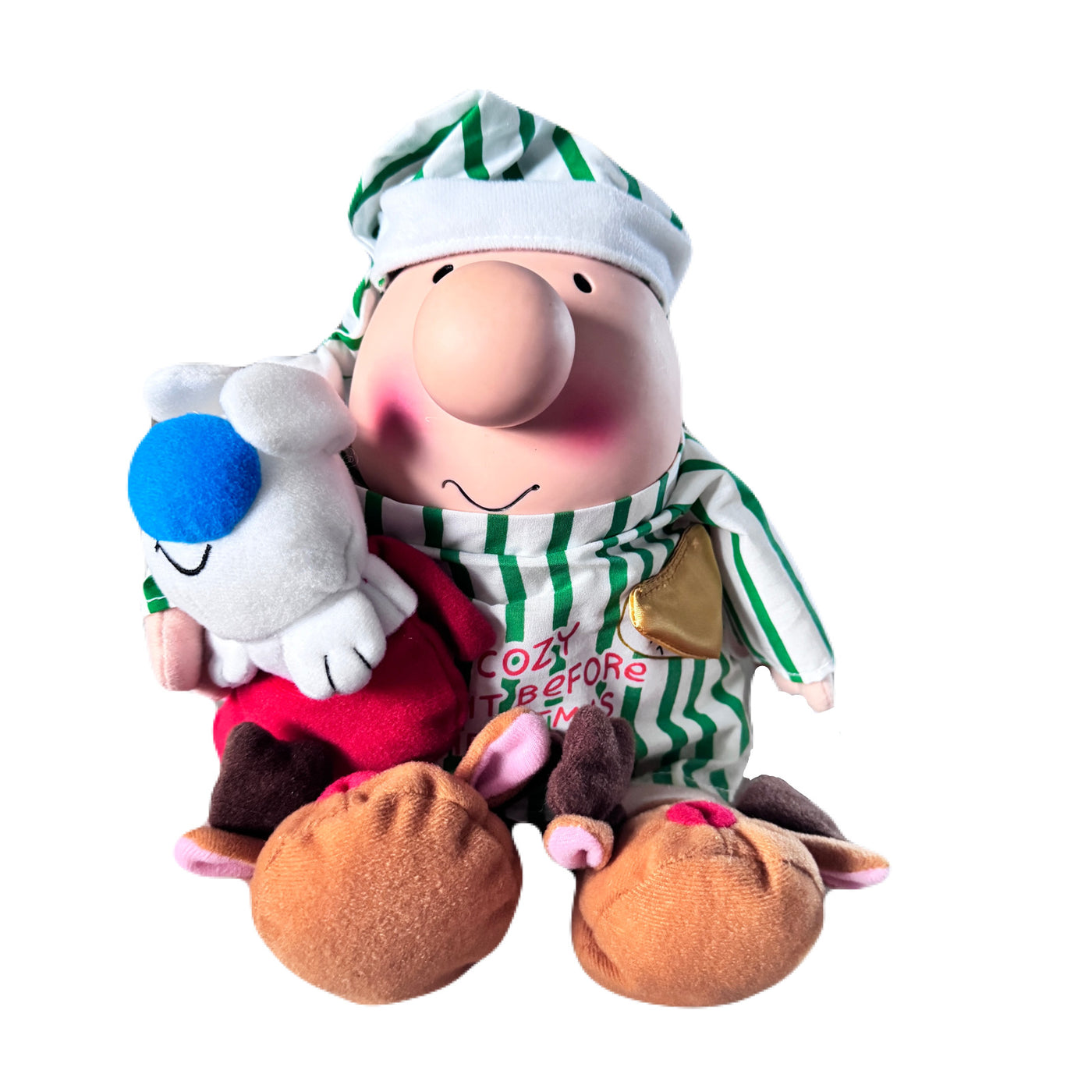 Large 12" Rare Christmas Ziggy & Dog Fuzz Doll NIGHT BEFORE CHRISTMAS Pajama Plush Message Messenger Stuffed Toy by Russ Vintage 2005 Collectible