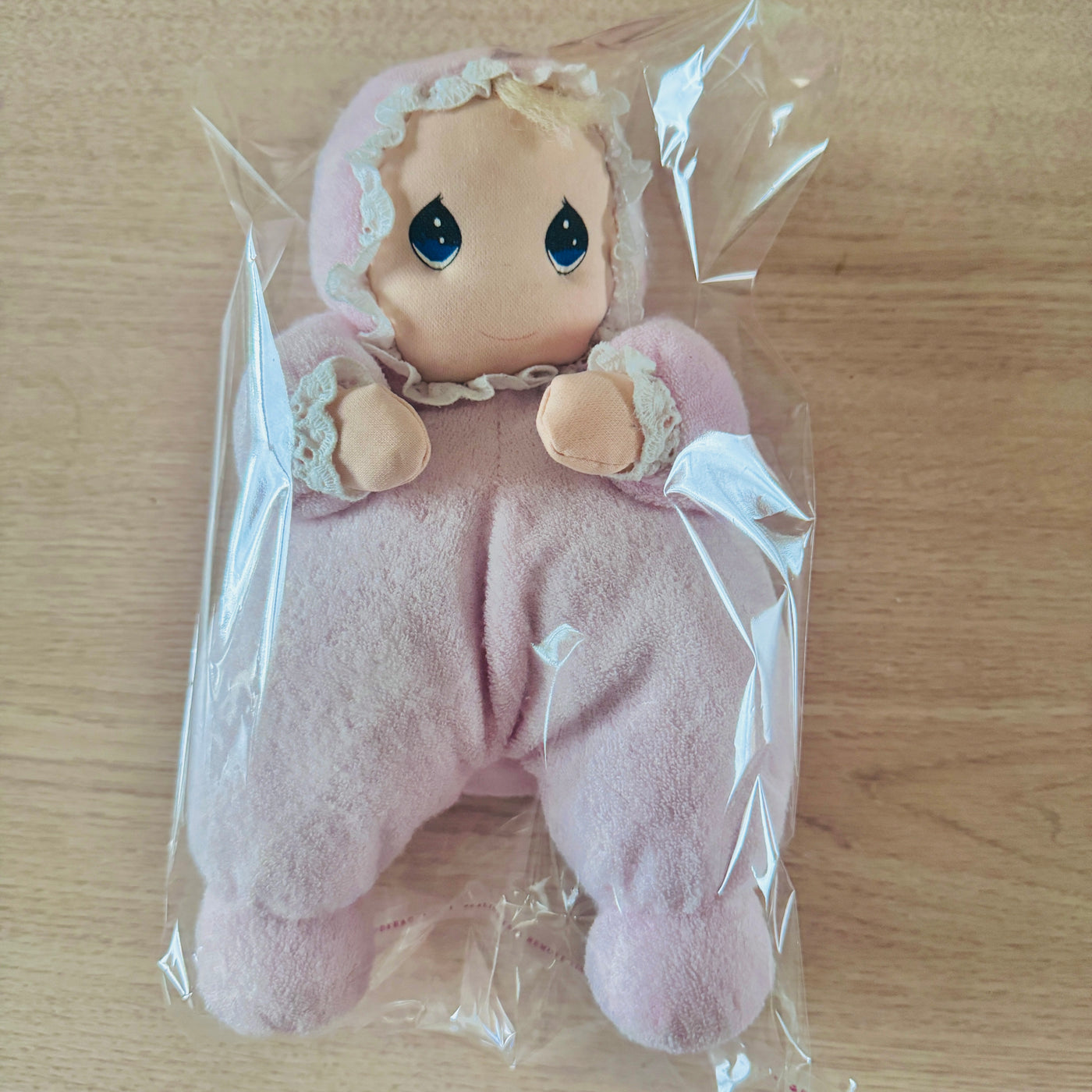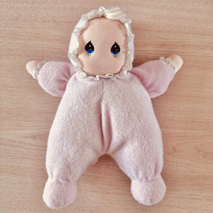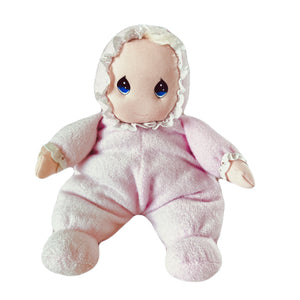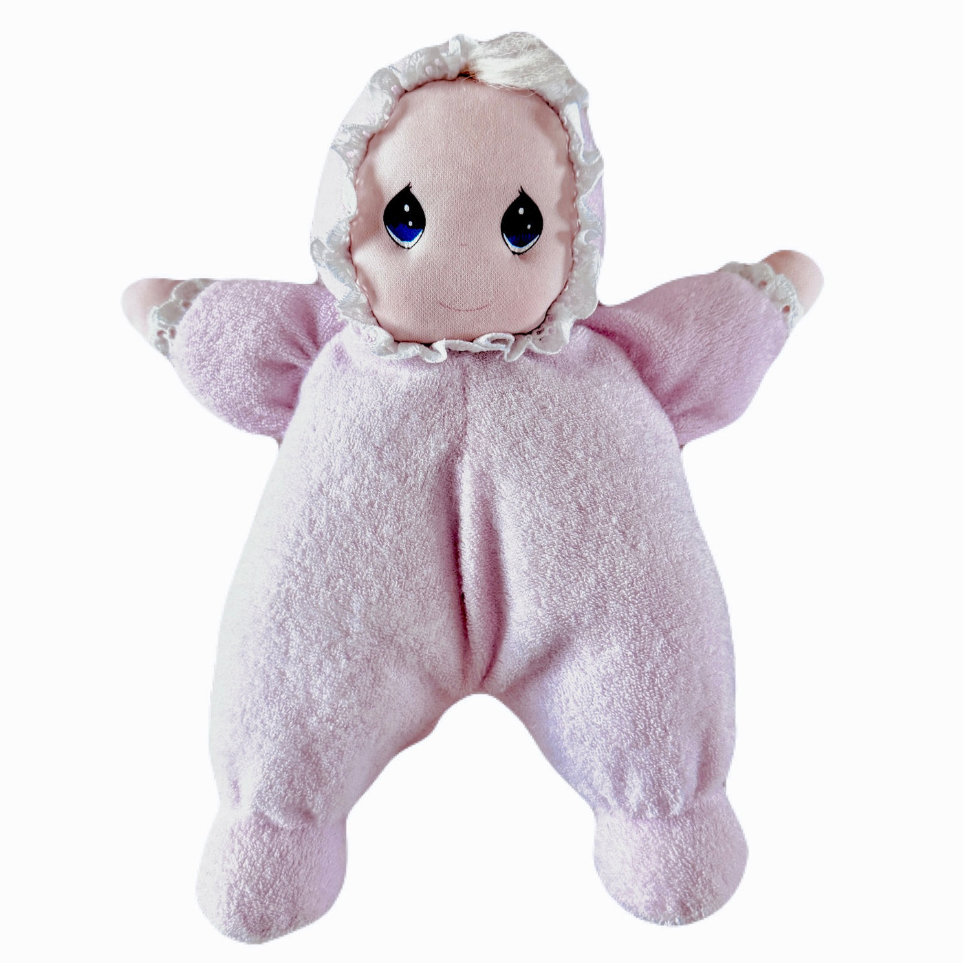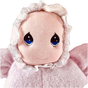 Vintage Precious Moments Terry Cloth Soft Plush Baby Doll 1995 Dakin Avon Lovey Pink Girl Collectible Beanbag Stuffed Toy 10"