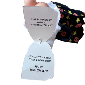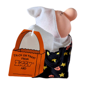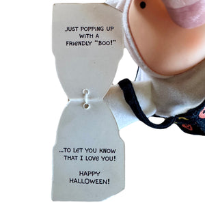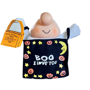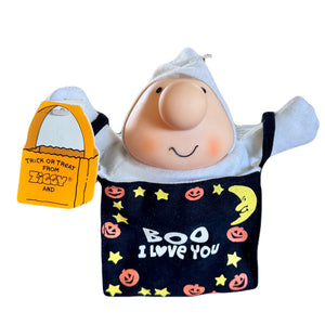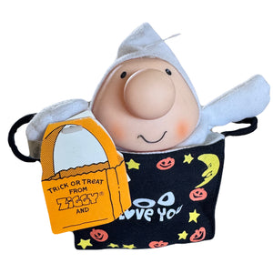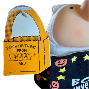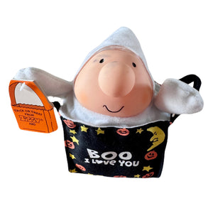 Vintage 1991 New Halloween Ziggy Plush Rag Doll BOO I LOVE YOU Collectible Toy Tom Wilson Trick or Treat Ghost Peeking From a Bag