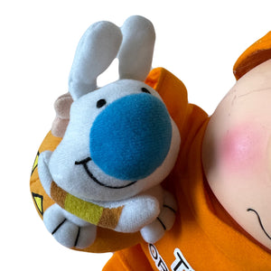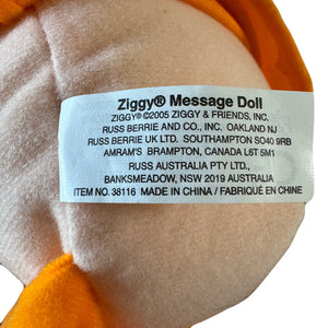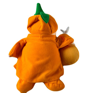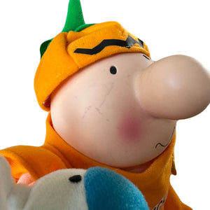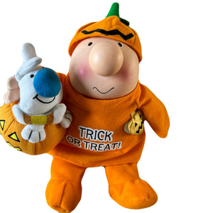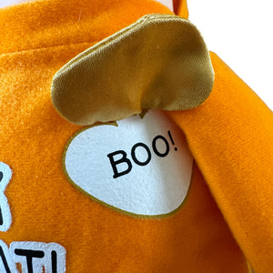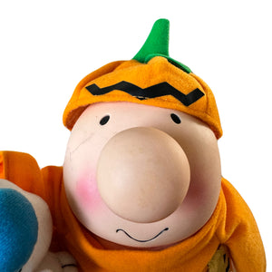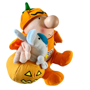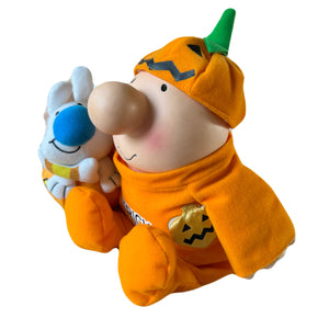 Vintage Rare Large 'Trick or Treat' Halloween Ziggy Orange Pumpkin Plush Toy Rag Message Doll 10" with Fuzz Dog Costume 2005 Collectible