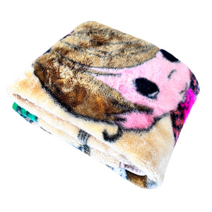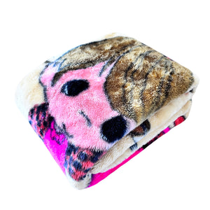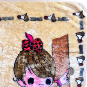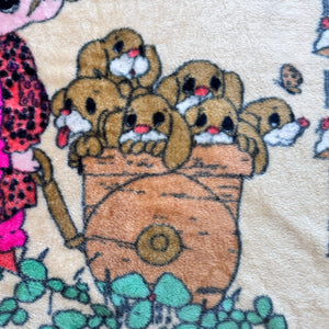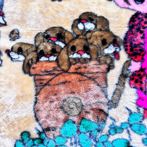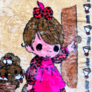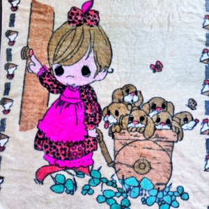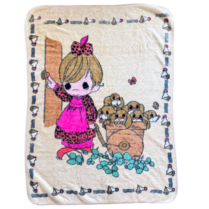 Vintage Rare Precious Moments Baby Crib Toddler Little Girl with Dogs Puppies Blanket Cheerful Giver Luxury Plush Raschel Thick Velvet Velour Minky Throw 44" x 58”