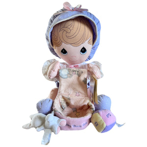 Vintage New Precious Moments 'Heaven Bless You' Girl Plush Wind Up Doll with Toys Musical Baby Nursery Toy 10" Rare Collectible 1999