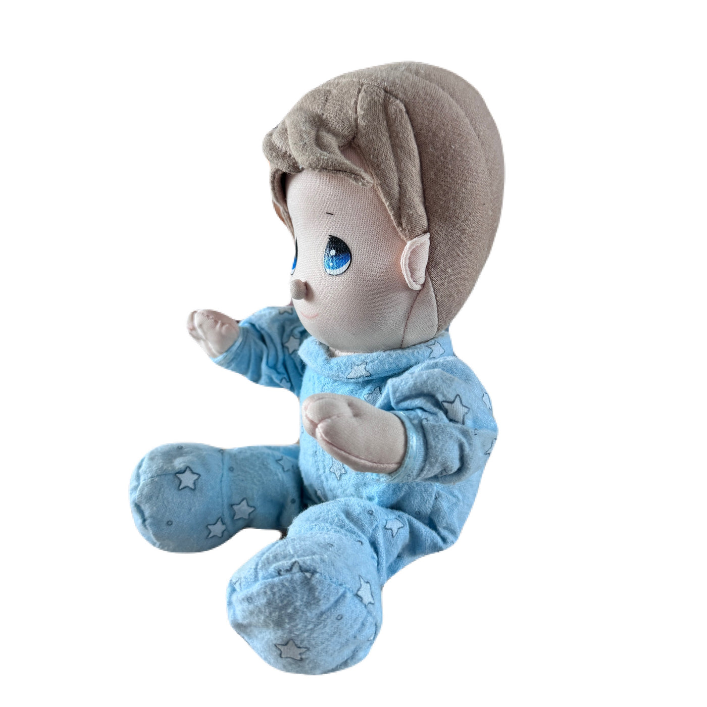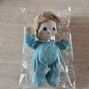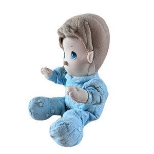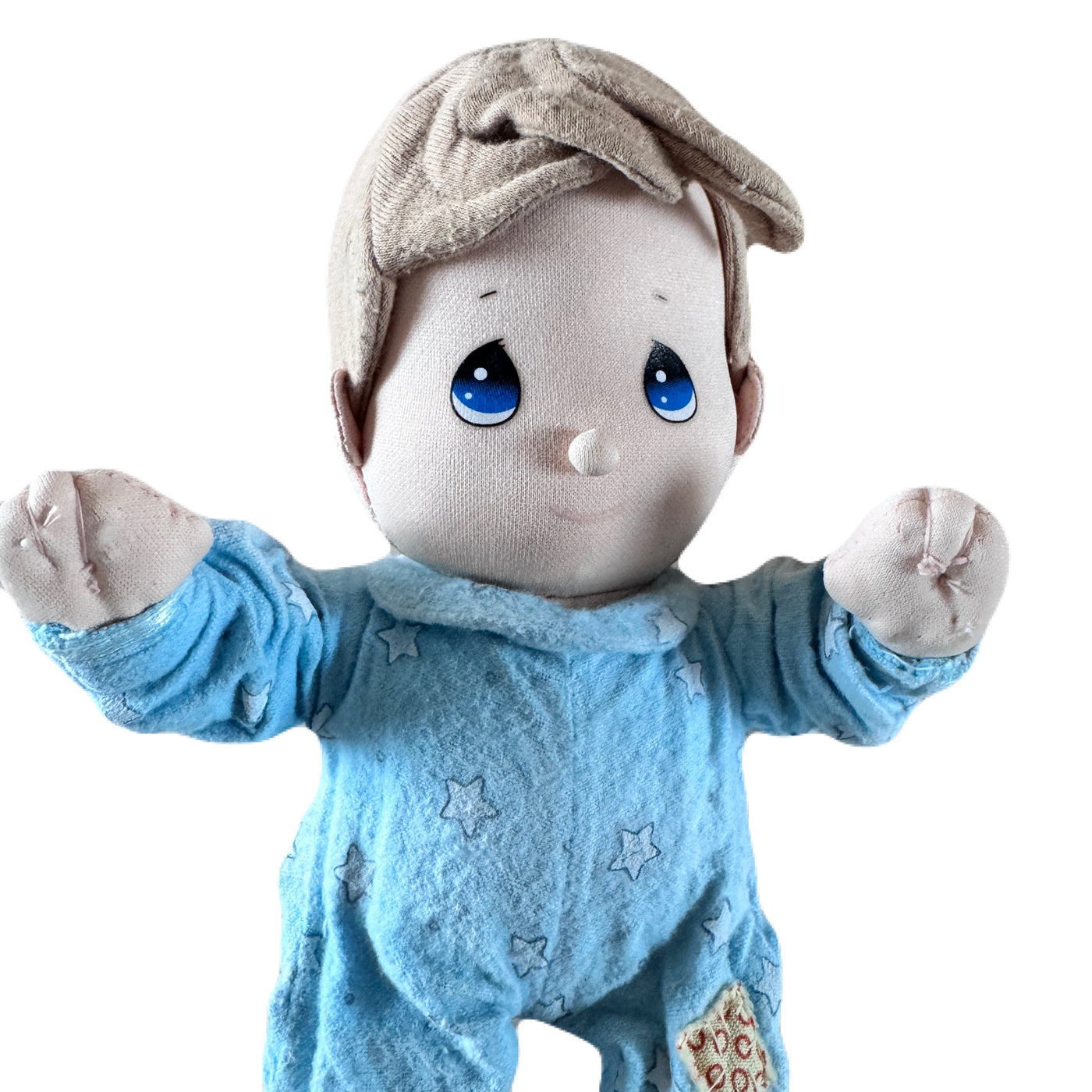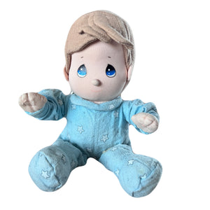 Vintage Precious Moments 9" Baby Boy Plush Doll Soft Rag Blue Cotton Pajamas Stuffed Toy Bedtime PAL