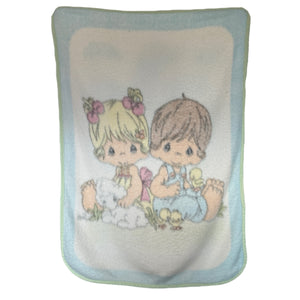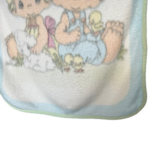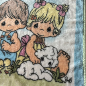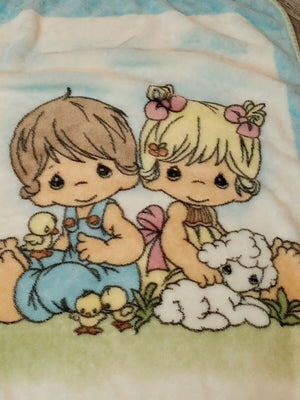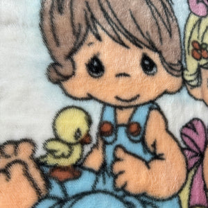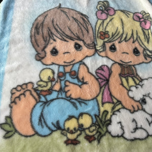 Vintage Rare Precious Moments PRECIOUS PALS Crib Baby Girl Boy Blanket Luxury Plush Minky Throw Children with Animals Lamb & Chicks 31" x 44"