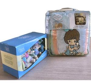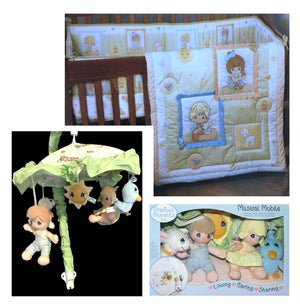 NEW Vintage Precious Moments PRECIOUS PLAYTIME Baby Crib Bedding Set Unisex Boy Girl & Animals 4-Piece Nursery Collection with Musical Mobile Rare