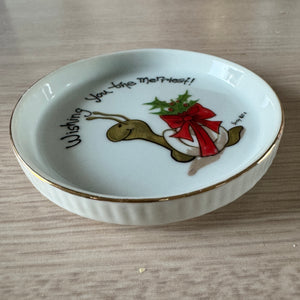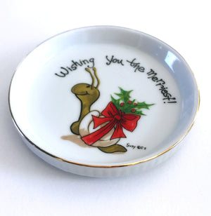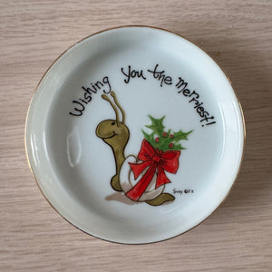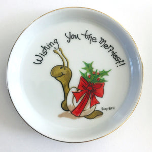 New Suzy's Zoo Christmas Snail 'Wishing You The Merriest!' Ceramic Coaster Dish Vintage Collectible 1976
