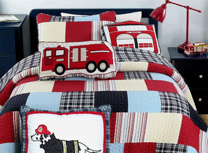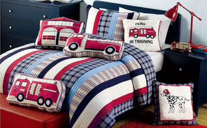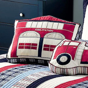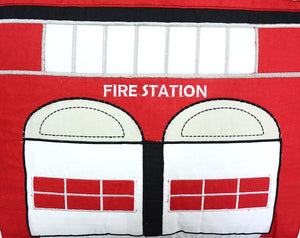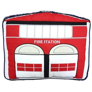 Red Fire Truck Station Cotton Decorative Kids Throw Pillow 17" x 14"