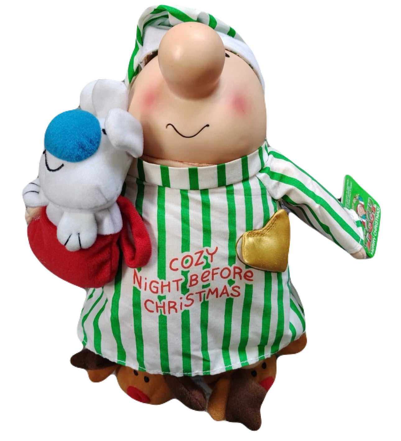 Large 12" Rare Christmas Ziggy & Dog Fuzz Doll NIGHT BEFORE CHRISTMAS Pajama Plush Message Messenger Stuffed Toy by Russ Vintage 2005 Collectible