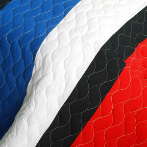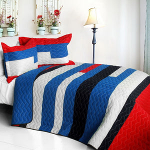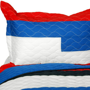 Red White Blue & Navy Striped Geometric Kids Boy Bedding Full/Queen Quilt Set Modern Bedspread