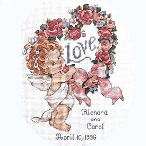 Vintage Wedding / Engagement Angel Cupid Love Counted Cross Stitch Kit 12” x 14" Simplicity JCA by Ruth Morehead
