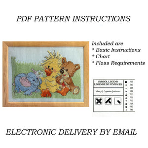 Little Suzy's Zoo Baby Animals Witzy Duck Boof Bear & Elephant Ellie Phant Counted Cross Stitch PDF Chart Pattern Instructions 5" x 7"