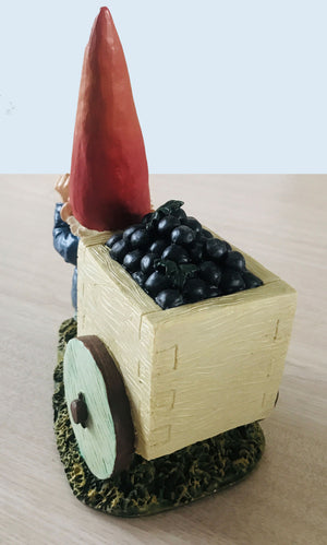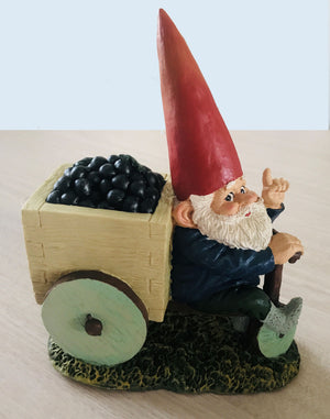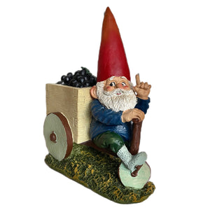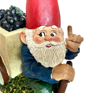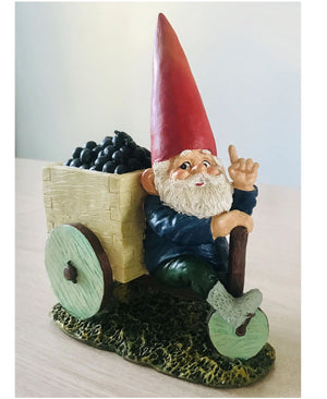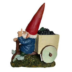 Warm up your home with this whimsical classic gnome riding his bicycle with attached wheelbarrow hauling a load of berries or grapes. This adorable, rare, and vintage 'life-sized' statue will be a nice decorative piece for your collection.