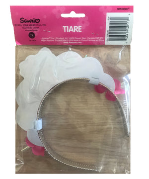 Hello Kitty Birthday Girl Party Tiara Silver & Pink with Pink Flowers