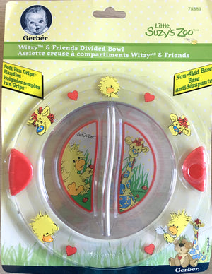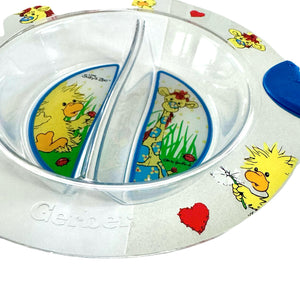 Little Suzy's Zoo Baby/Toddler Divided Bowl Food Dish Plate 7" Witzy Duck, Patches Giraffe, Hearts & Ladybugs