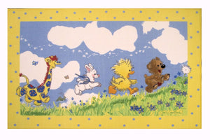 Little Suzy's Zoo Kids Playtime Area Rug Running Baby Animals Duck, Bear, Bunny, Giraffe Clouds & Meadow for Nursery Bedroom or Bathroom