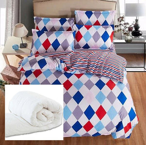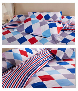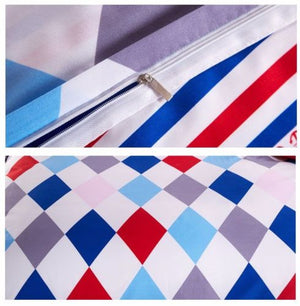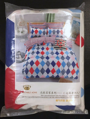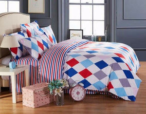 Red Blue White Diamond Nautical Striped Bedding 4pc Queen Duvet Cover Set