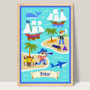 Pirates & Pirate Ships Personalized Kids Wall Art Print 12" x 18"