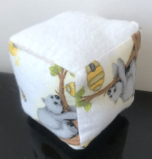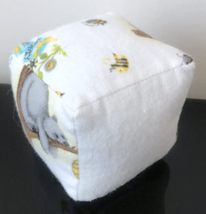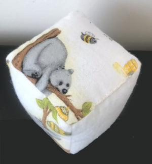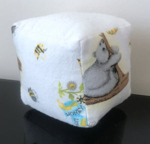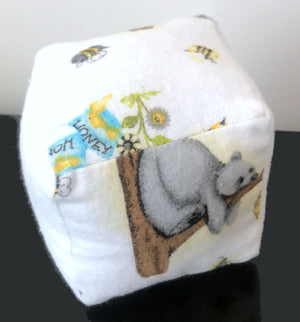 Honey Bear & Bee Plush Baby Block Toy 3" Soft Fleece Fabric Cube Hand-Made
