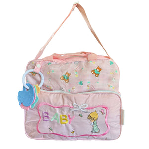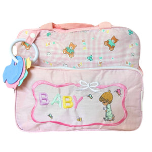 Vintage Rare New Precious Moments Style Pink Girl Medium Diaper Bag Y2K 2000 With Bonus Teething Toy Ring Elegant Kids 2000 Baby Shower Gift