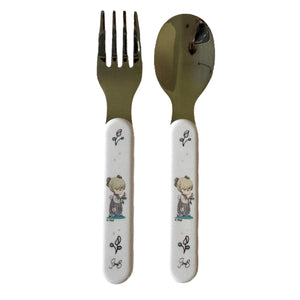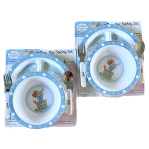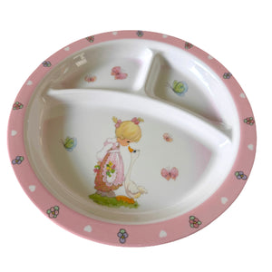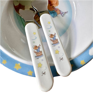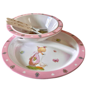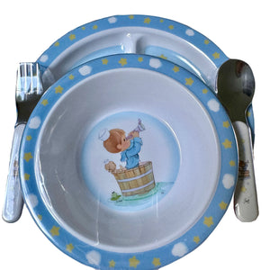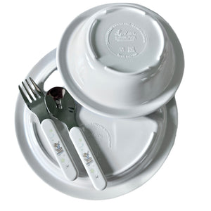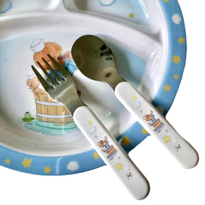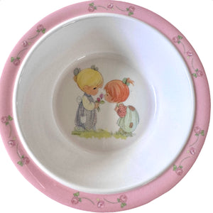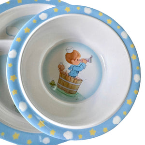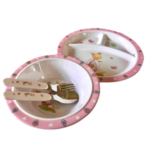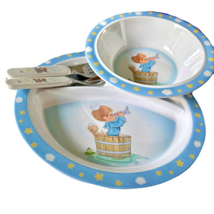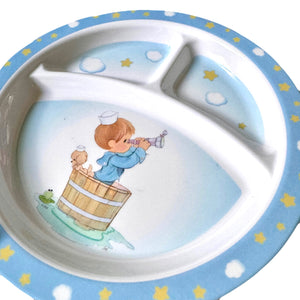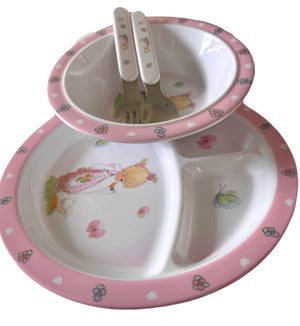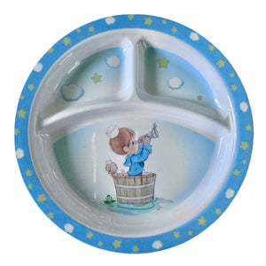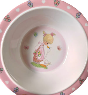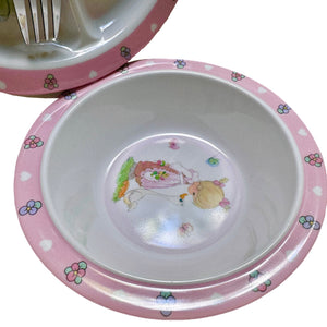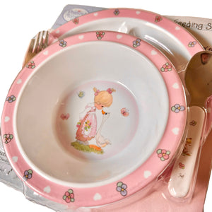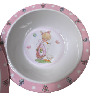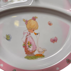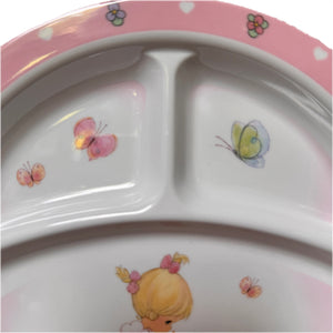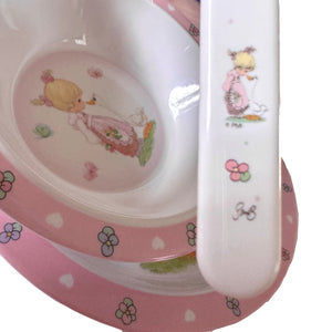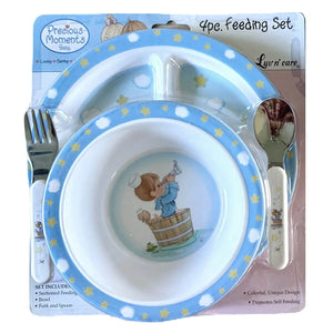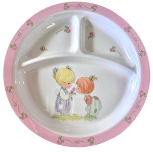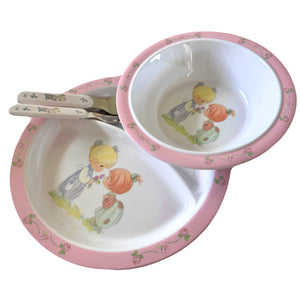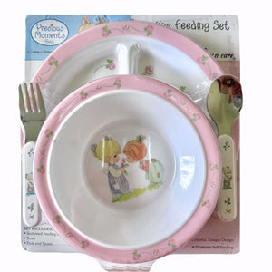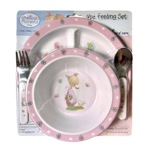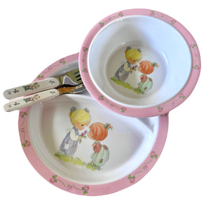 Precious Moments Baby Toddler Mealtime Feeding Gift Set Child 4PC Pink Girl or Blue Boy Divided Plate Bowl with Fork & Spoon - Baby Shower Gift