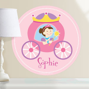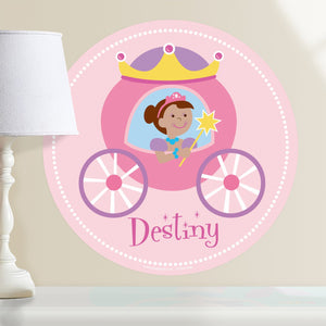 Princess & Carriage Wall Decal 12" Peel & Stick Personalized Sticker White or Ethnic