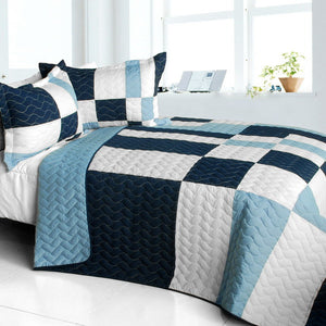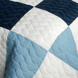 Blue White Patchwork Geometric Teen Boy Bedding Full/Queen Quilt Set