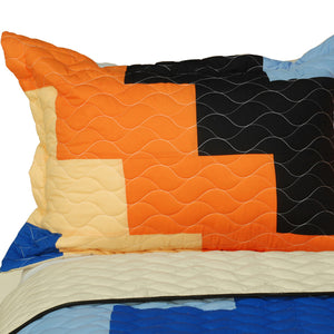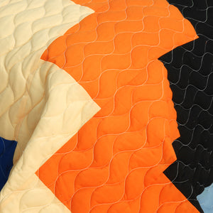 Blue Orange Black & Tan Geometric Teen Bedding Full/Queen Quilt Set Patchwork Modern Bedspread