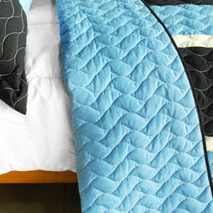Blue White Navy Striped Modern Teen Bedding Full/Queen Quilt Set Oversized Modern Bedspread