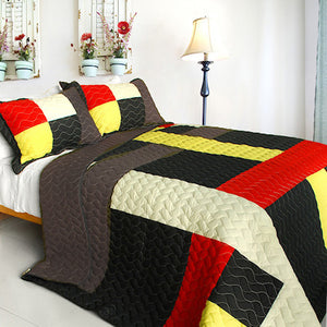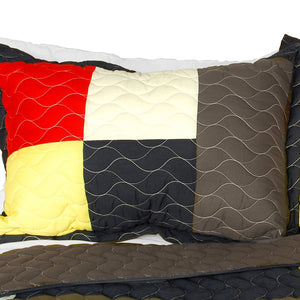 Black Gray Red Yellow Striped Teen Bedding Full/Queen Quilt Set Modern Geometric Bedspread