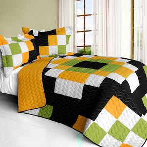 Black White Green Orange Pixel Eye Teen Boy Bedding Full/Queen Quilt Set Modern Geometric Bedspread