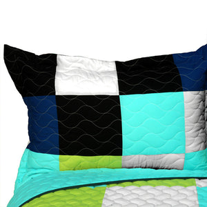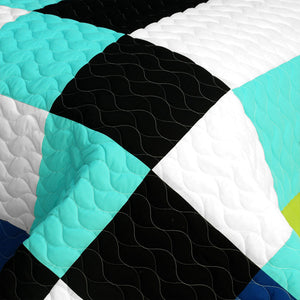 Black White Turquoise Teen Boy Bedding Full/Queen Quilt Set Modern Geometric Bedspread