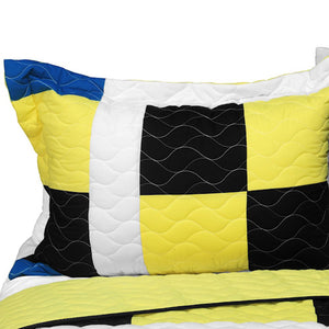 Black White Yellow Blue Block Patchwork Boys Bedding Full/Queen Quilt Set Teen Modern Bedspread